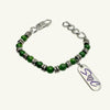 Un bracciale con sfere lisce di agata verde da 7 mm circa, separate da ematite ondulata, con struttura in acciaio inox. La lunghezza regolabile da 17 a 20 cm assicura una vestibilità comoda e personalizzabile.