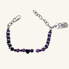 Realizzato con ametista sfaccettata in due forme raffinate, sfere tonde da 6x6 mm e rondelle da 5x4 mm, questo design unisce eleganza e originalità. Al centro è posto un cuore nero in acciaio inox da 9x8 mm, affiancato da piccoli cuori di ematite che completano il motivo romantico. Separatori a forma di rondelle in acciaio inox aggiungono luminosità al gioiello.