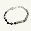 alternate a piccole sfere in acciaio inox da un lato e dettagli in ematite ondulata dall’altro. La struttura in acciaio inox garantisce resistenza, mentre la lunghezza regolabile da 18 a 22 cm assicura una vestibilità comoda e adattabile. Un design bilanciato e ricercato, perfetto per ogni stile.