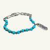 Bracciale realizzato con sfere lisce di howlite da circa 8-9 mm, impreziosito da separatori a forma di rondelle sfaccettate in ematite. La struttura resistente in acciaio inox e la lunghezza regolabile da 19 a 23 cm assicurano durata e comfort. Un design essenziale e armonioso, ideale per ogni occasione.