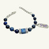 Bracciale realizzato con sfere lisce di lapislazzuli da circa 9 mm, impreziosito da un cubo centrale di lapislazzuli di circa 1 cm, il tutto alternato a separatori in acciaio inox. La struttura resistente in acciaio inox e la lunghezza regolabile da 17 a 22 cm assicurano praticità e durabilità. Un design che combina materiali di pregio con uno stile intramontabile.