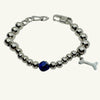 Bracciale con sfera di lapislazzuli sfaccettato da 8-9 mm, che aggiunge un tocco di colore profondo e sofisticato. La sfera è affiancata da sfere in acciaio inox, che ne amplificano la bellezza naturale. Al centro, un charm a forma di osso simboleggia l'amore e il legame speciale con i nostri amici a quattro zampe.
