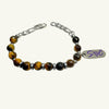 Bracciale realizzato con sfere sfaccettate di occhio di tigre da circa 9 mm, impreziosito da separatori in acciaio inox con forme di piccole sfere tonde e piatte. La struttura resistente in acciaio inox garantisce robustezza, mentre la lunghezza regolabile da 18 a 21 cm offre una vestibilità comoda e adattabile. Un design elegante e versatile, perfetto per ogni occasione.