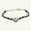 Bracciale composto da rondelle sfaccettate di onice da circa 5 mm, con separatori a forma di sfere in acciaio inox e al centro un charm raffigurante un osso color nero di 1,3 cm, circondato da strass. La struttura del bracciale è in acciaio inox resistente, mentre la lunghezza regolabile da 16 a 20 cm assicura una vestibilità perfetta. Un design originale e delicato, ideale per chi desidera un accessorio raffinato e distintivo.