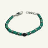 Un accessorio che cattura l'essenza della natura: questo bracciale combina la delicatezza della pasta di turchese con il carattere deciso della sfera in pietra lavica, impreziosito da eleganti separatori in ematite. La lunghezza regolabile da 17 a 22 cm lo rende perfetto per ogni polso, aggiungendo un tocco di stile e armonia ad ogni outfit.