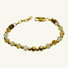 Bracciale quarzo citrino sfaccettato da 5x4 mm, alternato a sfere in acciaio inox placcato oro, che aggiungono un tocco di raffinatezza e luminosità. La struttura del bracciale, realizzata in acciaio placcato oro, offre resistenza e comfort. Con una lunghezza regolabile da 16 a 19 cm, si adatta facilmente al polso, offrendo una vestibilità perfetta.