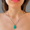 Un pendente di agata verde ovale da 24x18 mm, con tonalità che ricordano la vitalità della natura. L'agata verde è apprezzata per la sua energia rasserenante e il fascino unico delle sue sfumature. La collana snake in acciaio inox lunga 44 cm esalta il design pulito ed elegante, perfetto per arricchire ogni outfit con un tocco di freschezza e armonia.