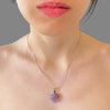 Pendente di ametista a forma di goccia, dalle dimensioni di 20x18 mm, che si assottiglia elegantemente fino a raggiungere i 4 mm nella punta. La vivace tonalità viola della pietra cattura immediatamente l'attenzione, evocando un senso di mistero e serenità. La collana è completata da una resistente catena in acciaio inox lunga 45 cm, perfetta per uno stile contemporaneo e versatile. Un gioiello unico, ideale per chi desidera portare con sé l'energia positiva dell'ametista e un tocco di eleganza intramontabile.