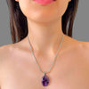 Un elegante pendente in ametista ovale da 29x21 mm, noto per le sue tonalità violacee profonde e luminose che catturano lo sguardo. L'ametista, simbolo di calma ed equilibrio, è abbinata a una collana snake in acciaio inox lunga 44 cm, che dona un tocco moderno e raffinato. Ideale per chi cerca un accessorio che trasmetta serenità e bellezza senza tempo.