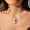 Un pendente in ametista ovale da 24x14 mm è abbinato a una delicata catenina in acciaio inox. Regolabile da 37 a 40 cm, questa collana elegante e versatile è ideale per completare con stile qualsiasi look.