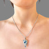 Pendente a goccia da 27x17 mm, realizzato con la rara pietra K2, nota per la sua base granitica punteggiata da macchie azzurre di azzurrite. Un minerale affascinante che racconta la potenza della natura e la rarità delle sue creazioni. La collana, lunga 48 cm, è arricchita da sfere glitterate azzurre in acciaio inox, che esaltano le tonalità uniche della pietra. Perfetta per chi ama indossare gioielli unici e carichi di energia.