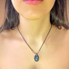 Questa collana presenta una pietra ovale di 19x14mm, i cui riflessi blu profondi evocano le profondità dell'oceano. L'incastonatura, realizzata con l'antica arte del macramè, ne valorizza la bellezza naturale e crea un design unico. La lunghezza di 52 cm la rende perfetta per essere indossata sopra una maglietta o un maglioncino, aggiungendo un tocco di eleganza e mistero al tuo stile. Un gioiello artigianale che cattura lo sguardo e celebra la bellezza della natura.