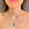 pendente in malachite da 24x11 mm, con le sue verdi venature naturali che ne enfatizzano la bellezza unica. La collana, con una catena a corda in acciaio inox lunga 45 cm, rappresenta un gioiello raffinato e senza tempo. Ideale per aggiungere un tocco di eleganza naturale ai tuoi outfit.