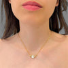 La collana presenta un elegante charm a forma di mezza luna 10x10 mm in acciaio inox , simbolo di equilibrio e di nuovi inizi. Il charm è accompagnato da piccole sfere placcato oro che arricchiscono il design con un tocco di brillantezza . La catenina in acciaio 316L color oro, aggiunge ulteriore luminosità al gioiello. La lunghezza della collana è regolabile da 39 a 41 cm, per adattarsi perfettamente al tuo stile.