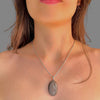 Un pendente di ossidiana argento da 35x22 mm, caratterizzato dai suoi affascinanti riflessi argentati che catturano la luce, arricchisce questa collana. La catenina in acciaio inox, intrecciata a corda e lunga 45 cm, completa il design con un tocco sofisticato e moderno. Un gioiello elegante e unico, perfetto per aggiungere un tocco di lusso al tuo look.