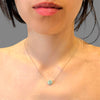 La collana trae ispirazione dai paesaggi naturali e dalla vitalità della natura, rappresentata dal verde intenso della drusa. Un accessorio che richiama la freschezza e l’energia di un bosco rigoglioso. Questa aggregazione di cristalli verdi offre una superficie vivace e luminosa, con sfumature che possono variare leggermente, rendendo ogni pezzo unico. È un gioiello che porta con sé una sensazione di freschezza e armonia, perfetto per aggiungere un tocco di colore e un richiamo al mondo naturale al proprio look. La sua bellezza è legata alla sua origine e alla vivacità del suo colore