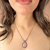 Collana in quarzo rosa, con una pietra ovale di 22x19mm, è l'accessorio ideale per chi desidera aggiungere un tocco di luce e delicatezza al proprio stile. La tonalità rosa tenue del quarzo si abbina facilmente a ogni outfit, valorizzando il decolleté con sobrietà. Con una lunghezza di 49 cm e una comoda chiusura a moschettone, è un gioiello pratico da indossare e perfetto per ogni occasione. Un dettaglio che esprime autenticità e armonia.